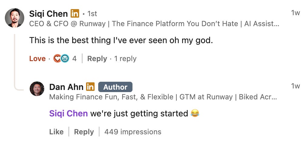 I even went viral on LinkedIn for this ridiculous post I made about working out and selling to finance people. Thousands of people made fun of me and it was hilarious.